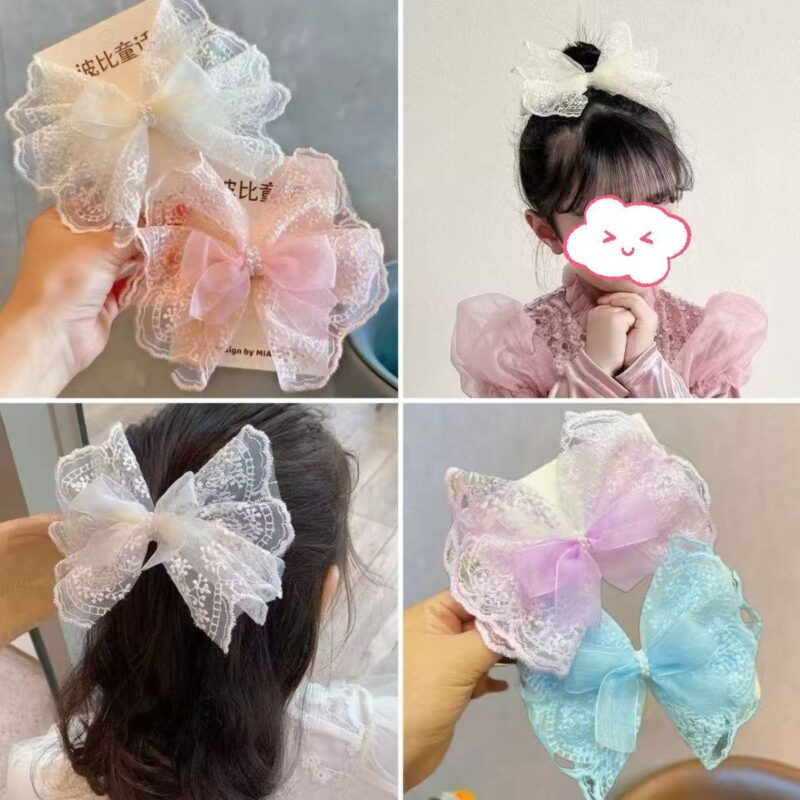 2025 Summer Korean Version Of Fairy Lace Big Butterfly Children’s Top Clip Internet Celebrity Girl Side Clip Princess Headdress Hair Accessories