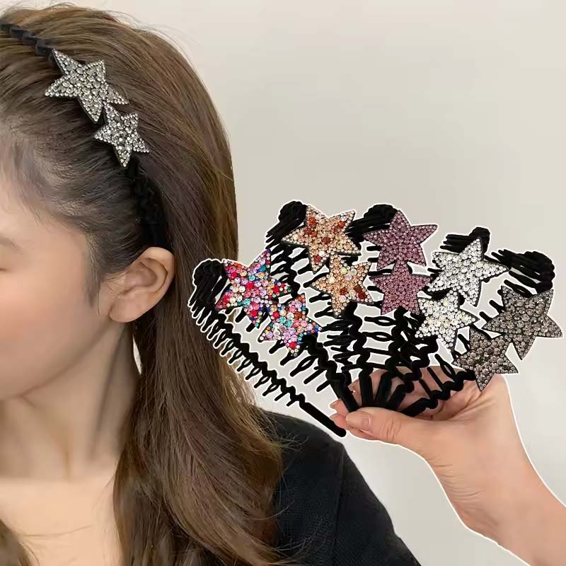 Double-star Rhinestones Antislip Hairband for Women Sweet Hair Decorate Crystal Headband Hair Hoop Fashion Hair Accessories