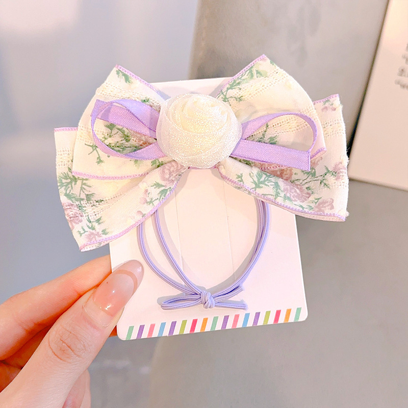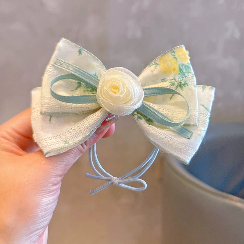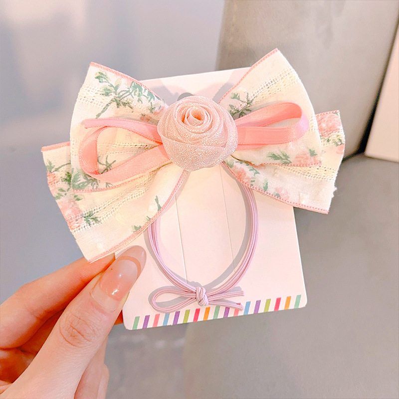 Children’s Retro Small Fresh Rose Flower Hair Ring Bow Sweet Girl Bun Ponytail Rubber Band Headband