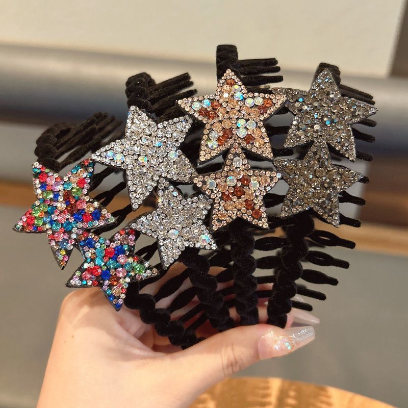 Double-star Rhinestones Antislip Hairband for Women Sweet Hair Decorate Crystal Headband Hair Hoop Fashion Hair Accessories